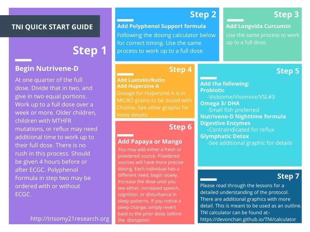 Use of dietary supplements in children with Down syndrome July 10 2018 There is a widespread practice of parents giving dietary supplements to children with Down syndrome in the hope of improving intelligence or function according to new research published in The Journal of Pediatrics. If NuTriVene-D Daily Supplement makes a child hyperactive call International Nutrition regarding a customized low methyl donor version as some children with Down syndrome are very sensitive to methyl donors. We studied the blood and urine of over 4000 patients with Down syndrome. Nutrition for special healthcare needs. The observations reported in this communication are based on the results observed when that dietary supplement was offered to patients with Down syndrome. TNI Targeted Nutritional Intervention is a protocol of mega-dosages of vitamins and natural products that the marketing promises helps overcome the effects of Down syndrome by using the logic of balancing out the over-expression of the 21st Chromosome. This lead me to NUTRIVENE. Amy Feldman Lewanda MD a medical geneticist at Childrens National Health System who treats hundreds of patients with Down syndrome. Nutrivene website lists the nutrition profile of the Daily Supplement that they recommend starting newborns on as young as 2 days old.